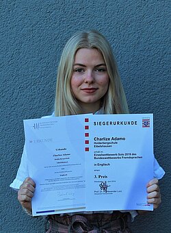 Auszeichnungen für Spitzenleistungen im Fach Englisch vor den Sommerferien Dritter und Neunter Platz auf Landesebene für Holderbergschülerinnen
