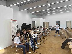 Am Samstagvormittag, den 20.09.25, durfte die Holderbergschule in ihrer Aula einen ganz besonderen Gastcoach für die Bläserklassen und Bigbands…