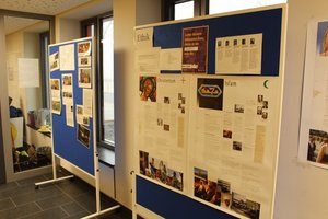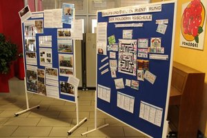 Auf der ansprechenden Stellwand des Fachbereichs Religion / Ethik wurden verschiedene Schul-Projekte präsentiert: die Fahrten nach Buchenwald (10. Klasse), die „Drogenreha“, Schulgottesdienste, Kreuzwege, öffentliche Theateraufführungen zur Kirchengeschichte, die Zusammenarbeit mit den Religionsgemeinden vor Ort und das Highlight für viele Schüler: die Schülerfreizeiten, auch in den Sommerferien. Beliebte Ziele: Norwegen und Schottland.