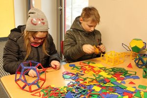 Mathematik zum Anfassen – dies gilt nicht nur für das Mathematikum in Gießen, sondern auch für die Holderbergschule, mit ihrem hauseigenen Mathematikum. Anhand von verschiedenen Formenspielen bekamen die zukünftigen Fünftklässler einen „handfesten“ Zugang in die Welt der Mathematik. Es gab eine Bau-Station, bei der einfache und komplizierte mathematische Körper nachgebaut wurden, eine Knobelstation, ein Statistikspiel, eine Leonardobrücke, bei der nur allein mit Holzplättchen eine tragfähige Brücke gebaut wurde, die es auch so in Wirklichkeit so gibt. Ebenfalls gab es noch optische Täuschungen, sowie der spielerische Beweis des Flächeninhalts eines Kreises. Danach waren die Schüler Mathe-Asse!