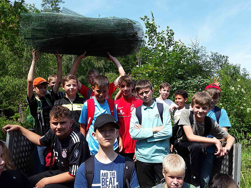 In den vergangenen Sommern entfernten Fünft- und Sechstklässler hunderte von Fraßschutzen von Jungbäumen, die mittlerweile so groß gewachsen waren, dass sie diesen speziellen Schutz gegen Wildverbiss nicht mehr benötigten. Eine dringend notwendige und einfache, aber eben sehr zeitaufwendige Tätigkeit, die aufgrund anderer Erfordernisse im Wald derweil zunächst liegen bleibt. Perfektes Einsatzgebiet also für die Jüngeren unter den Holderbergschülern.