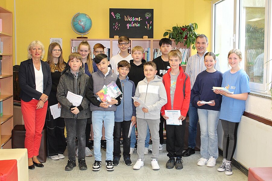 1.Reihe von links nach rechts: Fr.Rink, Jonathan Müller 5G2, Noah Nguyen 5G1, Joshua Aßmann 6G2, Arvin Celik 5G1, Tim Rudi 5R1, Lea Weg 6G1, Emma Hain 6G1, 2.Reihe von links nach rechts: Sophie Welsch 7G2, Emily Räder 7R2, Tim-Philipp Räder 7R2, Jonas Peters 8G2, Adrian Bazarov 8G1, Tim Werner Reh 8R2, Hr.Häußer
