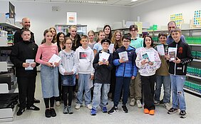 Jeden dritten Donnerstag im März veranstaltet die Universität Berlin einen deutschlandweiten Mathematik Känguru Wettbewerb. In diesem Schuljahr stellten sich 129 Schülerinnen und Schüler der Holderbergschule der Herausforderung. Am Freitag, dem 25. April lud der Schulleiter Patrick Zapf zur Siegerehrung in die Schulbibliothek ein. Gemeinsam mit dem Schulkoordinator Gebhard Häußer gratulierte er allen zu ihren großartigen Leistungen. Die drei Schulsieger waren Mika Menne (6G2), Bea Hermann (5G2) und Fabio Pfeifer (7G2). Mika und Bea erlangten sogar Sonderpreise auf nationaler Ebene. In der Realschule schafften Emily Räder (9R2), Marko Sushica (5R3) und Phil Holighaus (5R3) die besten Ergebnisse. Aus jedem Jahrgang wurden darüber hinaus die Besten geehrt. Das Känguru T-Shirt mit den „meisten richtigen Aufgaben am Stück“ eroberte sich in diesem Jahr Serhii Sheludko (8G1). Herzlichen Glückwunsch an alle Siegerinnen und Sieger.