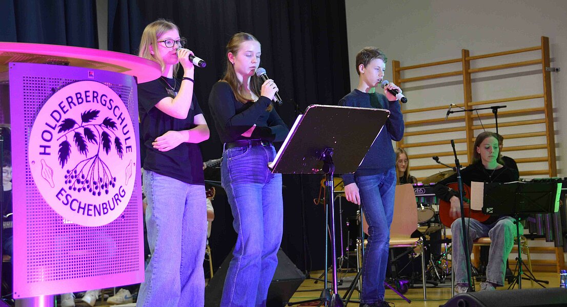 Am Donnerstag, den 19. Februar fand das Jahreskonzert der Musikklassen in der mit über 400 Zuhörern vollbesetzten kleinen Turnhalle an der Holderbergschule statt. Im Vorfeld waren die Musikstücke auf den Intensivprobentagen in Rodenroth akribisch einstudiert worden.