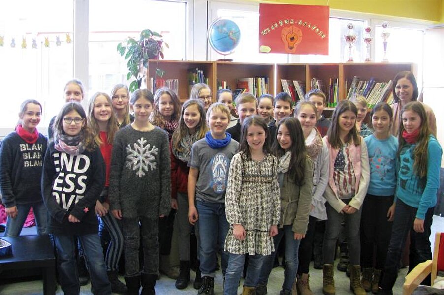 In diesem Jahr ist die Sieger-Klasse die 5G1 von Carolin Dintelmann (Foto), die mit 169 von 176 möglichen Punkten 96,03 % der Fragen richtig beantworteten. Andrea Reetz gratulierte den stolzen Siegern und überreichte ihnen eine Urkunde, ein Siegerfoto und Süßigkeiten. Alle anderen Klassen erhielten auch einen kleinen Preis und gingen so nicht leer aus. Die Schulbibliothek ist als Ort des Lernens, Lesens, der Nachmittagsbetreuung und als Ruhepol in den großen Pausen ein wertvoller, zentraler Teil der Holderbergschule.