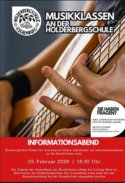 zu der Musikklasse (Klasse 5) statt. Datum: 05. Februar 2026 um 18:30 Uhr in der Aula.