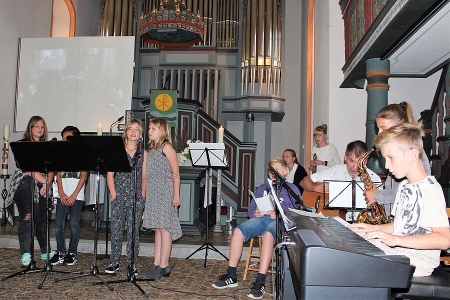 Pfarrer Schäfer hielt die Predigt, in der er Eltern und Lehrer als Vertrauenspersonen hervorhob und den Schülern versicherte, dass Gott mit an die neue Schule gehe. Zudem sollten die Schüler in ihrer neuen Klasse aufeinander achten und füreinander ein „Schirm" - oder biblisch gesprochen - ein „Segen" sein.