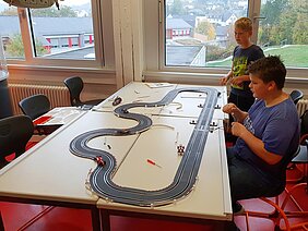 Der „Renner“ aber war aber die Carrera-Bahn, bei der zum Betreiben der Rennautos die Bewegungsenergie einer Kurbeldrehung in elektrische Energie umgewandelt wurde.