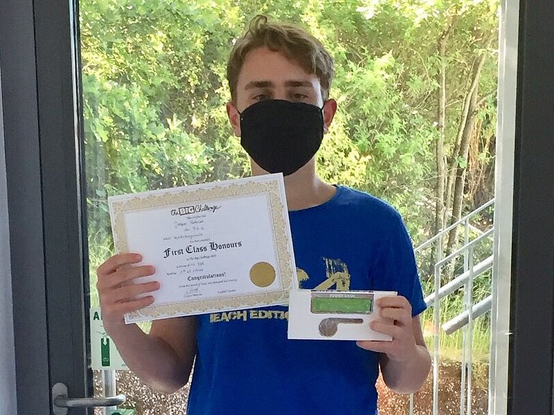 Im Bereich „Marathon“ hatten insgsamt 44 Gymnasiasten aus vier Jahrgangsstufen teilgenommen. Jasper Gabriel (7G2) belegte in seinem Jahrgang landesweit einen sagenhaften fünften Platz, bundesweit stand er auf Rang 47 und wurde daher Schulsieger. Sein Preis: Ebenfalls eine Ehrenurkunde und eine Powerbank.