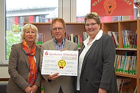 Dass die Übergabe in der Bibliothek der Schule stattfindet, ist kein Zufall: „Ein Großteil der Bibliotheksausstattung ist spendenfinanziert – hier sehen wir konkret, wie gut unserer Schule solche Spenden tun“, freut sich Schulleiterin Andrea Rink.