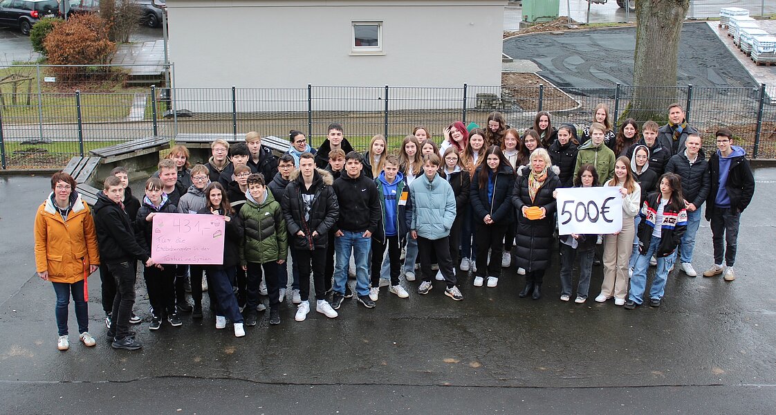 Auf diese Weise fanden innerhalb von zehn Tagen zwei Kuchenverkäufe an der Holderbergschule statt. Dabei wurden von der Klasse 10G1 500 Euro und der Klasse 8R2 431 Euro für die Erdbebenopfer in der Türkei und Syrien eingenommen und anschließend gespendet.