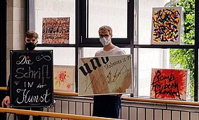 In einem Exkurs durch die Kunstgeschichte lernten die Jugendlichen, dass schon in der Kunstszene zu Beginn der Moderne berühmte Künstler wie Picasso oder Braque Schriften als gestaltende Elemente in ihre Bilder einfügten. Historisch besteht das Zusammenspiel zwischen Bild und Schrift sogar schon sehr viel länger, bedenkt man die Verbindung der mittelalterlichen Handschriften und der Buchmalerei. Im 21. Jahrhundert ist der Text zu einem selbstverständlichen Gestaltungsmittel der bildenden Kunst geworden, aber auch immer häufiger finden wir schmückende Schriften auf alltäglichen Gegenständen und Wohnaccessoirs. So erfährt gerade auch das handschriftliche Schönschreiben in Form des Handlettering-Trends eine Renaissance.