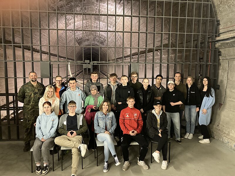 Holderbergschüler werden über deutsche Außen- und Sicherheitspolitik informiert Jugendoffizier an der Holderbergschule – Besuch des Regierungsbunkers in Ahrweiler