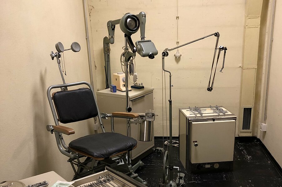Ein zentrales Thema des Besuchs war die atomare Bedrohung, der die Menschen während des Kalten Krieges direkt ausgesetzt waren und die leider auch heute wieder aktuell werden könnte. Als wichtiges Zeugnis jener Zeit dient der ehemalige Regierungsbunker in Ahrweiler, der heute noch teilweise begehbar ist. Zusammen mit den Schülerinnen und Schülern fuhr Herr Schäbler daher in Begleitung der Lehrkräfte Peter Hagenbäumer und Jessica Hermann mit der Schülergruppe am 2.6. ins Ahrtal. Während der beeindruckenden Bunkerführung war deutlich spürbar, wie das Leben der bis zu 3000 systemrelevanten Personen ausgesehen hätte, die im Ernstfall für die Handlungsfähigkeit der Bundesrepublik verantwortlich gewesen wären. Neben technischen Einrichtungen wie einer Krankenstation, Friseur, Fernsehstudio, Küche oder Werkstatt, sind im Bunker auch viele Details dokumentiert, die die schiere Größe der Bunkeranlage verdeutlichen. So wäre die Post beispielsweise mit Fahrrädern ausgefahren worden, um die langen Wege schneller zurückzulegen.