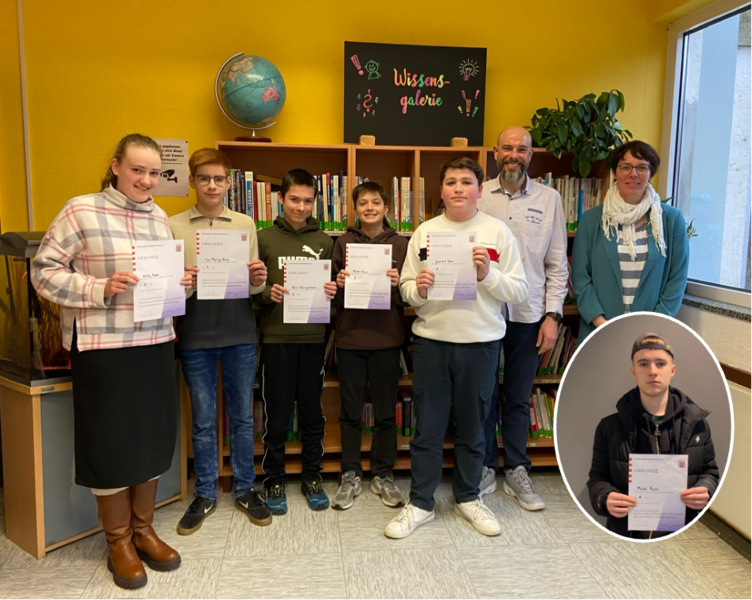 Im gymnasialen Zweig erreichten sowohl Jannik Peters (8G1) als auch Marlon Krause (8G1) 44 Punkte und teilen sich den ersten Platz. Diese tollen Leistungen wurden von dem Schulleiter Patrick Zapf sowie der Mathematikfachleiterin Kristin Grau mit Urkunden und einem kleinen Geschenk gewürdigt. Für die zweite Runde, welche Anfang März auf Kreisebene gegen die Schulsieger der anderen Schulen ausgetragen wird, wünscht die Schule den diesjährigen Schulsiegern viel Erfolg und gutes Gelingen.