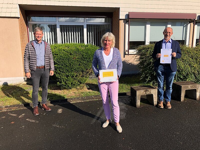 "Wir sind jetzt nicht nur ‚MINT-freundliche Schule‘, sondern auch eine der 19 hessenweit ausgelobten ‚Digitalen Schulen‘“, freuten sich Andrea Rink und Stefan Wagner. Am 21. Oktober erfolgte die virtuelle Preisverleihung, im Rahmen einer Online-Veranstaltung, durch Herrn Staatssekretär Dr. Manuel Lösel. Die Re-Zertifizierung als „MINT-freundliche Schule“ war bereits letztes Jahr erfolgt. Mit dieser Auszeichnung wird die kontinuierliche Entwicklung des Fachbereichs Informatik gewürdigt. „Die Holderbergschule erfüllt nicht nur die technischen Voraussetzungen für digitales Lernen, sondern hat sich im Bereich des Lernens mit Computer, Tablet oder Smartphone besonders engagiert.“, erklärt der Leiter des Fachbereichs Informatik. „In den letzten zehn Jahren wurde ein leistungsfähiges Computernetzwerk mit WLAN sukzessive aufgebaut und erweitert. Seit Jahren bietet der Schulserver „Iserv“ Lehrern und Schülern individuellen Zugang zu ihren Daten und Aufgaben, ihrem Kalender, zum E-Mail-Dienst der Schule, oder zum Messenger und– neuerdings - zu Videokonferenzen der Schule.“