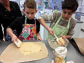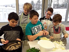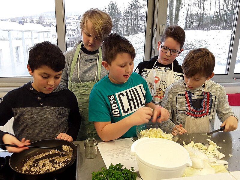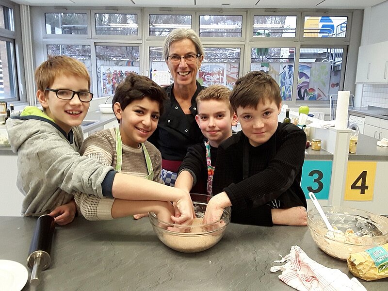Wichtig sei es darüber hinaus, die Schüler*innen für ein neues Angebot zu begeistern. In der schuleigenen Küche konnten Fünftklässler unter professioneller Anleitung von Hanne Weise, Oecotrophologin und Beraterin beim cleveren Esszimmer, an zwei Vormittagen Sinn-voll kochen und essen. Sie wurden in dieser Zeit zu wahren „SchmExperten“. Trinkgewohnheiten wurden unter die Lupe genommen und die Schüler*innen lernten, dass Wasser, Schorlen und ungesüßte Tees die besten Durstlöscher sind. Auch dass ausgewogene, vollwertige und gesunde Gerichte leicht zuzubereiten sind und zudem noch schmecken, war für die Schüler*innen eine wichtige Erfahrung.