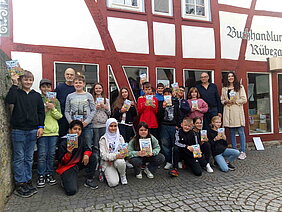 Am 14. Mai 2025 unternahm die 5H1 mit ihren Lehrerinnen Judith Meyer und Julie Sir einen faszinierenden Ausflug zur Buchhandlung „Rübezahl“ in Dillenburg. Die Kinder wurden von den beiden freundlichen Inhabern der Buchhandlung - Johannes Eckert und Volkmar Nix - herzlich empfangen. Die Buchhändler brachten ihnen nicht nur die Welt der Bücher näher, sondern boten auch interessante Einblicke in die verschiedenen Genres und die Arbeit in einer Buchhandlung. Die Schülerinnen und Schüler erfuhren wie ein Buch entsteht - vom ersten Entwurf bis zur Veröffentlichung - und welche Bedeutung eine gute Buchauswahl für eine erfolgreiche Buchhandlung hat. Im Rahmen der Aktion „Ich schenk dir eine Geschichte“ zum Welttag des Buches erhielten die Kinder den Comicroman „Cool wie Bolle“ als Geschenk. Die 5H1 zeigte sich begeistert von der Buchhandlung und dem Buchgeschenk. Die 5H1 und ihre zwei Lehrerinnen danken der Buchhandlung herzlich für die Einladung und freuen sich schon auf weitere spannende Leseaktionen.