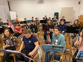 So gingen die drei Tage viel zu schnell vorbei! Leider konnten die jungen Musiker ihre beeindruckenden Leistungen nicht unmittelbar im Anschluss an die Probentage unter Beweis stellen, weil das Jahreskonzert aus gegebenem Anlass verschoben werden musste. Die erarbeiteten Konzertbeiträge werden nun im Mai auf dem Open-Air-Konzert sowie auf einem Bläserklassenkonzert dargeboten.