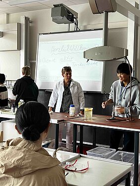 Neben attraktiven Tagesausflügen unter anderem nach Koblenz und in den Hessenpark, stand auch ein Besuch an der Holderbergschule auf dem Programm. Die Austauschgruppe schnupperte in den Unterrichtsalltag und durfte zudem beim Jonglieren und bei chemischen Experimenten aktiv werden.