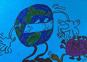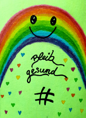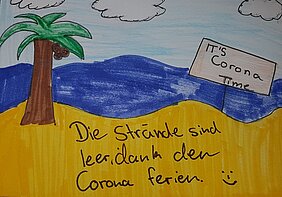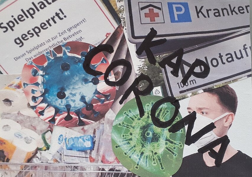 Wie können die Erfahrungen während der Schulschließung und der ausgefallene Familienurlaub während der Osterferien, bedingt durch Corona, künstlerisch genutzt und konstruktiv verarbeitet werden? Diese Frage bewegte den Kunstlehrer Sebastian Paschal. Die Antwort war eine Aufforderung an die Schülerinnen und Schüler, ihre Erfahrungen, Gedanken und Gefühle in Postkartenformat auszudrücken: Die Vorderseite sollte zeichnerisch, die Rückseite verbal gestaltet werden. Das Ergebnis kann sich sehen lassen: „Ich bin überrascht über die vielen kreativen und humorvollen Einsendungen!“, freut sich der Kunstlehrer. „Nicht nur im Internet hat Corona verborgene Talente zum Vorschein gebracht. Auch mit Stift und Papier haben unsere Jugendlichen gezeigt, dass sie künstlerisch begabt sind.“