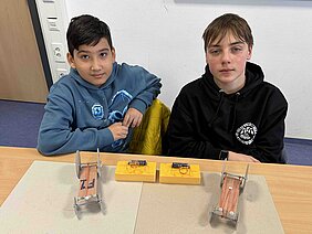 So wurde beispielsweise ein Modellauto konstruiert, bei dem die Spannenergie eines Gummibandes in Bewegungsenergie umgewandelt wird. In einem weiteren Versuch bauten die Schülerinnen und Schüler einen sogenannten Taschenofen. Dabei reagiert ein Gemisch aus Eisenpulver, Aktivkohle und Salzwasser mit dem Luftsauerstoff. Dieses Experiment erfolgte unter fachkundiger Anleitung der Tutoren und Beachtung aller Sicherheitsvorgaben. Nach gründlichem Schütteln wurden Temperaturen von bis zu 90 °C erreicht. Eine vergleichbare Technik findet sich im Alltag beispielsweise in Wärmepflastern wieder. Außerdem wurden funktionierende Modelle eines Elektromotors aus einer selbst gewickelten Kupferspule, einem Magneten und einer Batterie gebaut.