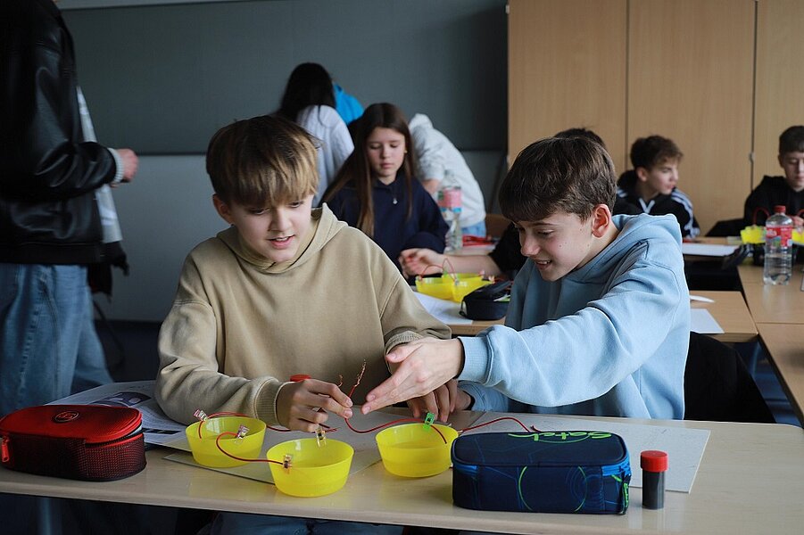 Nach der Begrüßung durch den Schulleiter Patrick Zapf, der Tutorensprecherin der Universität Siegen sowie Dr. Ulrich Kaltenbrunner aus dem Fachbereich Naturwissenschaften der Holderbergschule, ging es direkt in die zweitägige Praxis: Mit großer Neugier und sichtbarer Begeisterung starteten die Siebtklässler im Klassenverband in die Experimentierphase rund um das Thema „Energieumwandlung“.