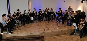 Die 18 Schüler/innen der Brassband haben zusammen mit ihren Lehrern einen abwechslungsreichen Gottesdienst vorbereitet. Mit geistlicher Bläsermusik, alten und neuen Liedern.