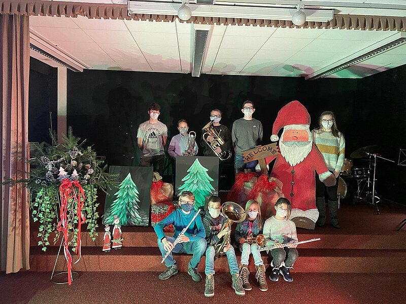 In diesem Jahr ist bekanntlich alles anders. Der Fachbereich Musik meisterte die Herausforderung und erstellte innerhalb eines Tages in Zusammenarbeit mit der Kunstlehrerin Steffi Hausner pünktlich zum Nikolaustag ein Musikvideo vor weihnachtlicher Kulisse im Musikraum. Somit können die jungen Künstler der Musikklassen ihr Können Eltern, Großeltern, Verwandten und Bekannten in digitaler Form unter Beweis stellen. Persönliche Weihnachtsgrüße und solistische Beiträge wurden erstellt, einstudiert und schließlich aufgezeichnet – unter Coronabedingungen. Musikalisch und künstlerisch begleitet wurden die Schülerinnen und Schüler dabei von Dennis Amend, Beate Czymek und Jessica Tirjan sowie von drei erfahrenen Musikklassenschülern der Abschlussklassen: Kaja Marie Giersbach (10G1), Silas Hofheinz (10G1) und Leon Schmidt (9H2). Diese tatkräftige Unterstützung ließ die jungen Musiker auch schnell ihr Lampenfieber vergessen.