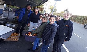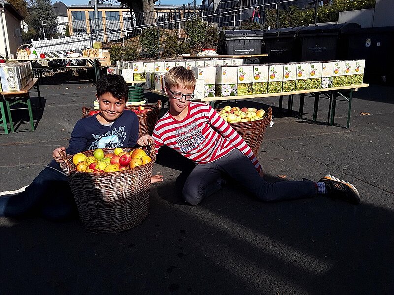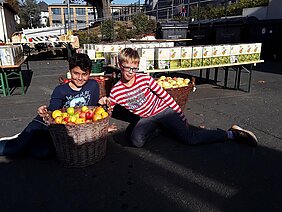 Als um 14 Uhr der letzte von Schülerhand gepflückte Apfel über das Förderband lief, standen schon die privaten Obstbauern aus den umliegenden Dörfern Schlange. Auch sie wollten die Obstpresse an der Holderbergschule nutzen und freuten sich über die tatkräftigen Schüler, die ihnen dabei bis zum frühen Abend zur Hand gingen.