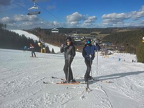 Der Großteil der Gruppe hatte zuvor noch nie oder erst einmal auf Skiern gestanden, so dass es am Anfang zunächst an den Übungshang ging, mit ausführlichen Anweisungen für die ersten "Schritte" auf den Skiern. Nach und nach gewannen aber alle Schülerinnen und Schüler immer mehr Sicherheit und somit auch Freude am Skifahren.