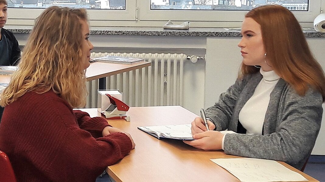 praxisnahe Beispiele (z.B. Vorstellungsgespräche in Form von Rollenspielen), durch das Einbringen von eigenen Erfahrungen sowie durch das Erläutern von häufig gestellten Fragen in Vorstellungsgesprächen hergestellt. Anschließend beantwortete die Referentin zahlreiche Schülerfragen.