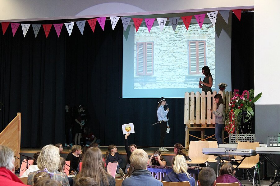 Eingebettet in diese Einblicke ins Zeitgeschehen wurde auch die Geschichte der Holderbergschule beleuchtet. So gab es viele Schulfotos aus den letzten Jahrzehnten sowie Einschulungsfotos vieler Lehrerinnen und Lehrer, die sehr zur Erheiterung beitrugen.