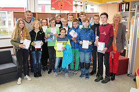 Die Siegerehrung durch die Schulleiterin Frau Rink fand am 2.Mai in der Bibliothek statt. Die drei Schulsieger waren Jona-Matteo Werner (7G2), Kim Maxim Zips (7G2) und Henry Krenzer (8G2). In der Realschule siegte Luca Weinert (5R1). Das Känguru T-Shirt für die meisten richtig gerechneten Aufgaben „am Stück“ erhielt Tom Weinert (6G1). Frau Rink gratulierte allen Jahrgangssiegern und bedankte sich, dass sie auf diese Weise die Holderbergschule hervorragend vertreten hätten mit einem herzlichen „weiter so“.