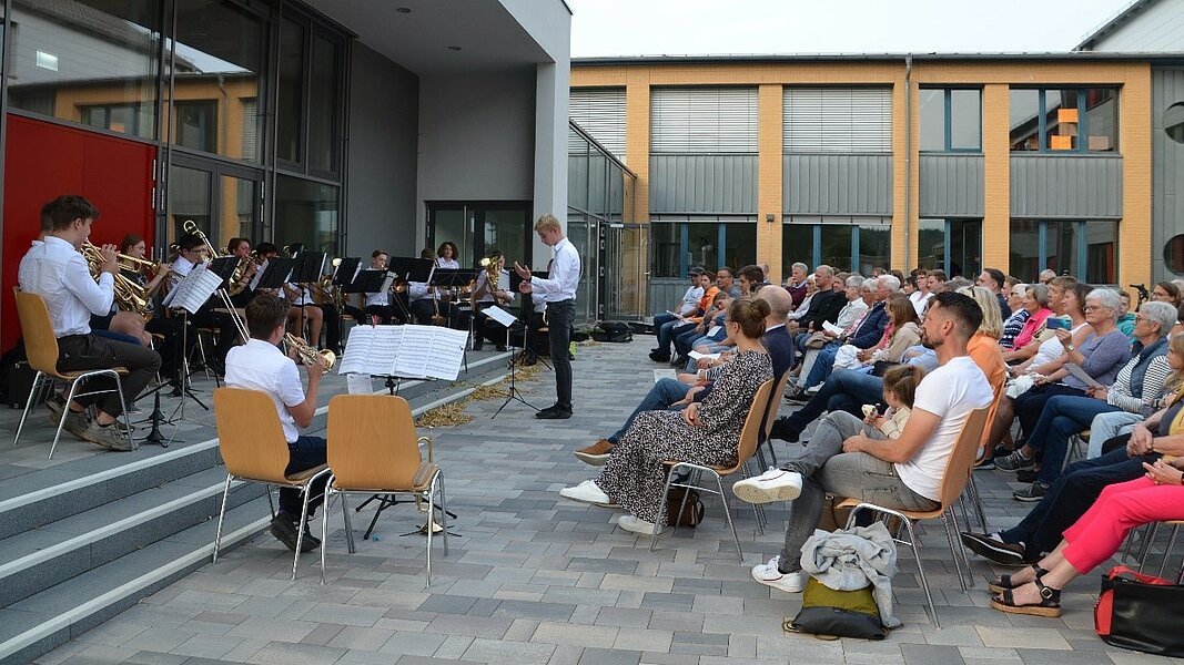 Mit 15 Stücken aus Klassik und Moderne begeisterte die Brassband bei ihrem Schuljahresabschluss Konzert am 04. Juli. Die 15 Schülerinnen und Schüler spielten zusammen mit Kristin Hermann und Gebhard Häußer sowohl Mozart, Bach und Beethoven, als auch Märsche, Filmmusik und Spirituals. Zwischen den Stücken gab es Informationen zu den Kompositionen, aber auch Eindrücke von der einwöchigen Tschechienreise anlässlich der 20-jährigen Partnerschaft zwischen Eibelshausen und Petschau. Herr Häußer bedankte sich bei allen Sponsoren und Eltern für die Finanzierung dieser beeindruckenden Reise, u.a. mit Konzerten in Karlsbad und in der Petschauer Schlosskapelle. Er verabschiedete den Trompeter Florian Eizenhöfer und den Schlagzeuger Lucas Sosna und bedankte sich für ihr Mitwirken in der Brassband während der Holderbergschulzeit. Nach zwei Zugaben und viel Applaus ließ die Brassband den Abend in einer Pizzeria ausklingen.