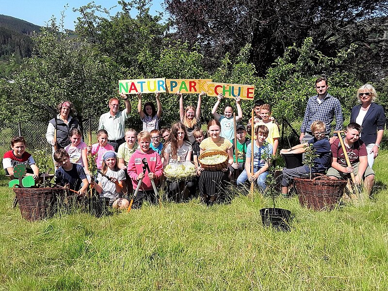 Gemeinsam mit der Schulleiterin Andrea Rink und dem Vorsitzenden des schuleigenen Fördervereins Hans Werner Kirchhoff staunte er über das Engagement der Holderbergschüler, die sich mit großem Einsatz um die Pflege dieser großen Obstwiese kümmern. Das ganze Jahr über wird hier gearbeitet. Die Apfelbäume werden geschnitten, neue Sorten werden veredelt und gepflanzt und die Ernte wird eingefahren und zu Saft verarbeitet. Erst in den letzten Wochen wurde gemeinsam mit der ortsansässigen NABU-Gruppe eine große Insektenwiese angelegt.