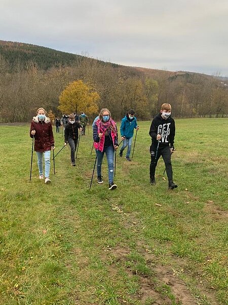 Dank der Unterstützung des Fördervereins konnten sehr kurzfristig Nordic-Walking-Stöcke in Klassenstärke angeschafft werden, die seither regelmäßig zum Einsatz kommen. Besteht bei vielen Schülerinnen und Schülern anfänglich meist eine gewisse Abneigung gegen diesen „Senioren-Sport“, legt sich diese meist schnell, wenn die Technik korrekt beherrscht wird.