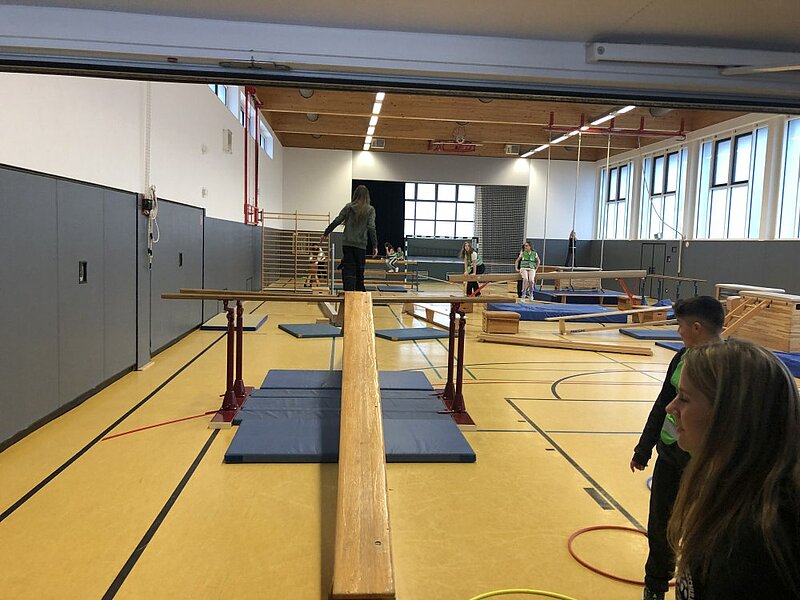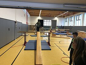 Sport wird an der Holderbergschule groß geschrieben: So konnten in der großen Sporthalle Roller, Trikes und Waveboards ausprobiert werden, die in der "bewegten Pause" zum Einsatz kommen. Auch Jongliergeräte (Tücher, Diabolos, Devil Sticks und Teller) warteten auf die jungen Besucher. – Unterstützung kam von den Schülerinnen und Schülern der "Jonglier-AG". Diese zeigten zudem, was sie im letzten Schuljahr mit Einrad, Hochrad, Kugel, Rolle und Stelzen gelernt haben.
