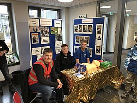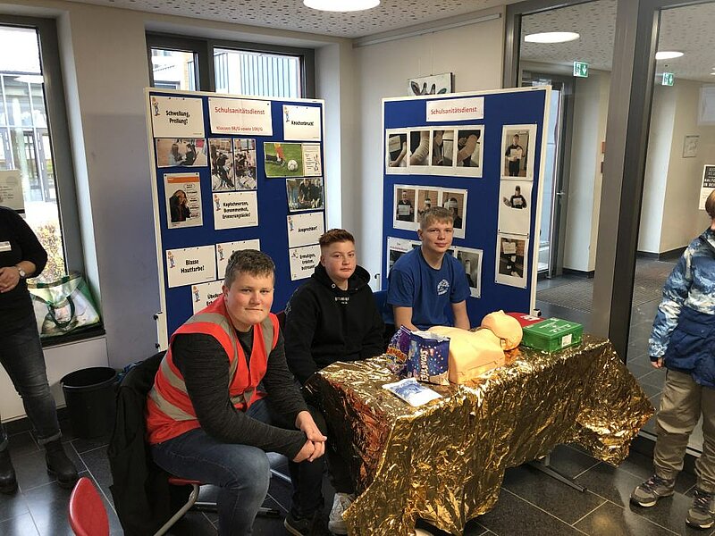 Am Stand des Schulsanitätsdiensts wurden diverse Verbände angelegt und die Herz-Lungen-Wiederbelebung am Puppenmodell erprobt. – Am Stand von UBUS informierte der Sozialpädagoge Tim Meyer über seine Aufgaben, zu denen allgemein die sozial-pädagogische Begleitung der schulischen Entwicklung der Schülerinnen und Schüler und speziell der "Jugendmedienschutz" und die Vermittlung von Medienkompetenz gehört.