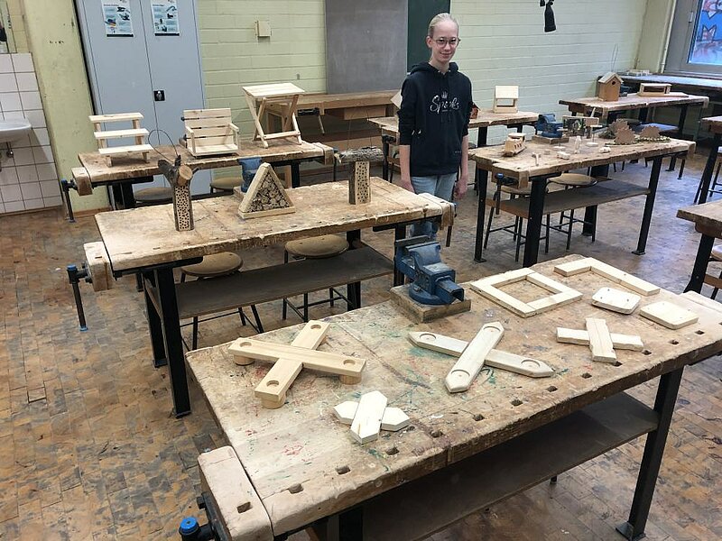 Viele interessante Objekte galt es im selbstgebauten Mathematikum der Holderbergschule auszuprobieren: ein Glücksrad zur Wahrscheinlichkeitsberechnung, eine Brückenkonstruktion ohne den Einsatz von Nägeln, der Bau von mathematischen Körpern aus Klickformen, Knobelspiele und vieles mehr.