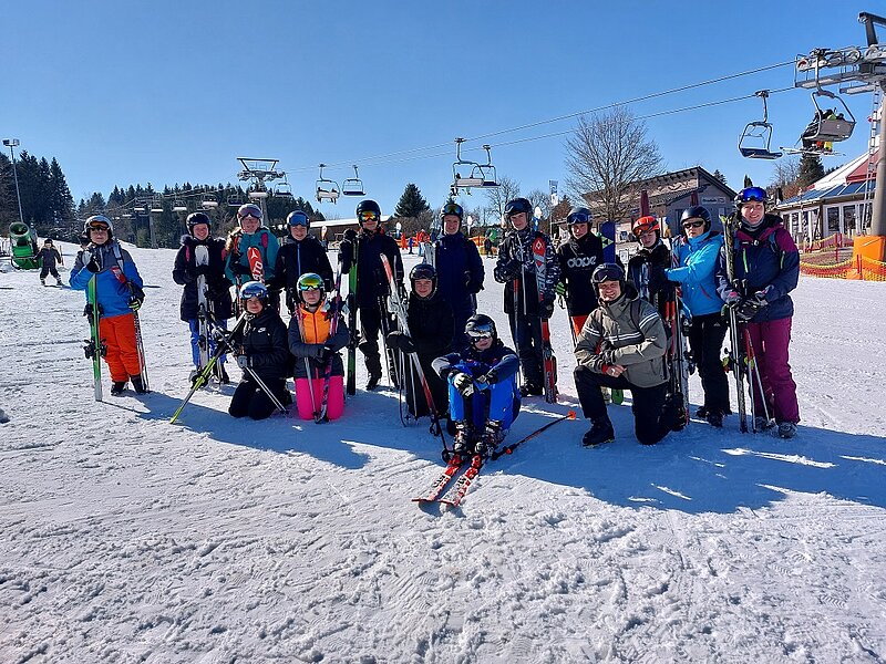 Das Highlight des WP-Kurses „Raus aus dem Haus“ der Holderbergschule für die Klassen 8 und 9 ist eigentlich die Skifreizeit im schönen Eisacktal in Südtirol. Leider musste sie in diesem Jahr aufgrund der Pandemie erneut abgesagt werden. Als kleines Trostpflaster hat Kursleiter Julian Heinz einen Tagesausflug ins Skikarussell Winterberg organisiert. Die Kursteilnehmer*Innen, die zu einem großen Teil noch nie auf Skiern gestanden hatten, sollten zumindest einen kleinen Einblick in die wunderbare Welt des alpinen Sports erhalten. Und dies gelang…