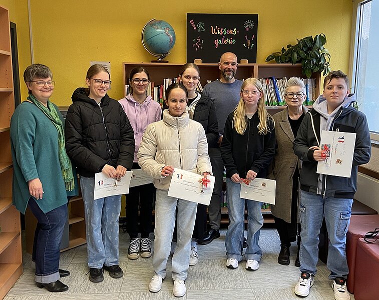 "Dieses Jahr machen wir mal was Neues", so die Entscheidung des Fachbereichs Französisch. So wurde der Vorlesewettbewerb Französisch in diesem Schuljahr zum ersten Mal digital durchgeführt. Alle interessierten Schülerinnen und Schüler sollten einen kurzen, selbst ausgewählten Text vorlesen, digital speichern und auf der Schulplattform iserv hochladen. Die Jury, bestehend aus den Französischlehrerinnen Sonja Heumann und Silvia Nieländer, wählten die besten Ergebnisse aus. Am 16. April fand die Siegerehrung in der Schulbibliothek statt.