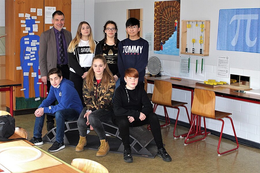 „Wie groß muss ein Wandspiegel sein, damit ich mich ganz darin sehen kann?“ - „ Wie kommt es beim Fliegen zum Auftrieb?“ - „Wie schaffen Eiskunstläufer ihre Pirouette?“. Diese und weitere Fragen wurden während der Einweihungsfeier des neuen „ExperiMINTum“ anhand von anschaulichen Experimenten und unter der fachkundigen Leitung von Gebhard Häußer und seiner Klasse, der 8G1, geklärt.