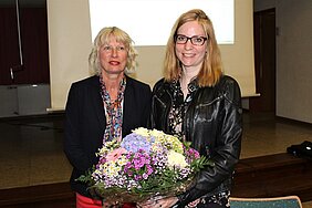 Nach ihrem Vortrag bekam die Referentin als kleines „Dankeschön“ einen Blumenstrauß durch die Schulleiterin Andrea Rink überreicht.