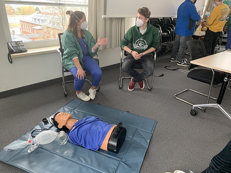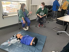 Der Kurs – geleitet von Annelie Marten-Tirjan - hatte nun die Möglichkeit, innerhalb einer Woche an einem „Fachkräftecamp – Zukunftsberufe in Gesundheit, Pflege sowie Kinder- und Jugendhilfe“ teilzunehmen. Der Organisator Provadis - Partner für Bildung und Beratung GmbH in Frankfurt/Höchst vermittelte den Schülerinnen und Schülern in dieser Woche einen guten Überblick zu Einstiegs- und Entwicklungsmöglichkeiten in allen Berufen rund um die Themen Gesundheit, Pflege sowie Kinder- und Jugendhilfe. So wurde praxisorientiert vermittelt, welche Fähigkeiten und Fertigkeiten in den Gesundheits- und Pflegeberufen benötigt werden.