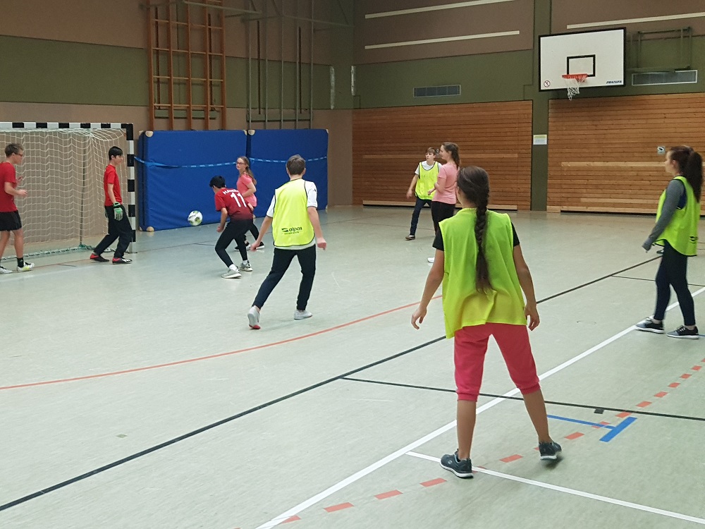 Als Sportlehrer bietet Andreas Huttel erstmalig in diesem Schuljahr den WP-Kurs „Fußball“ an. Im Mittelpunkt steht die Verbesserung der praktischen Fähigkeiten sowie die Vermittlung theoretischer Kenntnisse in Bezug auf das Fußballspielen. Der Schwerpunkt liegt momentan auf der individuellen Arbeit: So können die Kursteilnehmer gezielt ihr Leistungsniveau verbessern. Dies geschieht durch Übungen zum Umgang mit dem Ball und zur Passgenauigkeit. Auf der theoritischen Seite steht Regelkunde und die Einführung in verschiedene taktische Varianten (4:4 bzw. 5:5) auf dem Stundenplan.