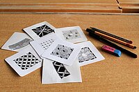 Bevor die jungen Künstler ihre erste Kachel anfertigen konnten, gab es ein Kurzvideo als Anleitung. Dieses diente auch als Inspirationsquelle für persönliche Motive, die anschließend aufs Blatt gebracht wurden. „Das Zeichnen erfordert anfänglich Disziplin und Konzentration. Aber schon bald stellt sich ein Gefühl der Entspannung ein. Besonders motivierend ist es für die Schüler, dass die kleine Fläche schnelle Ergebnisse ermöglicht.“