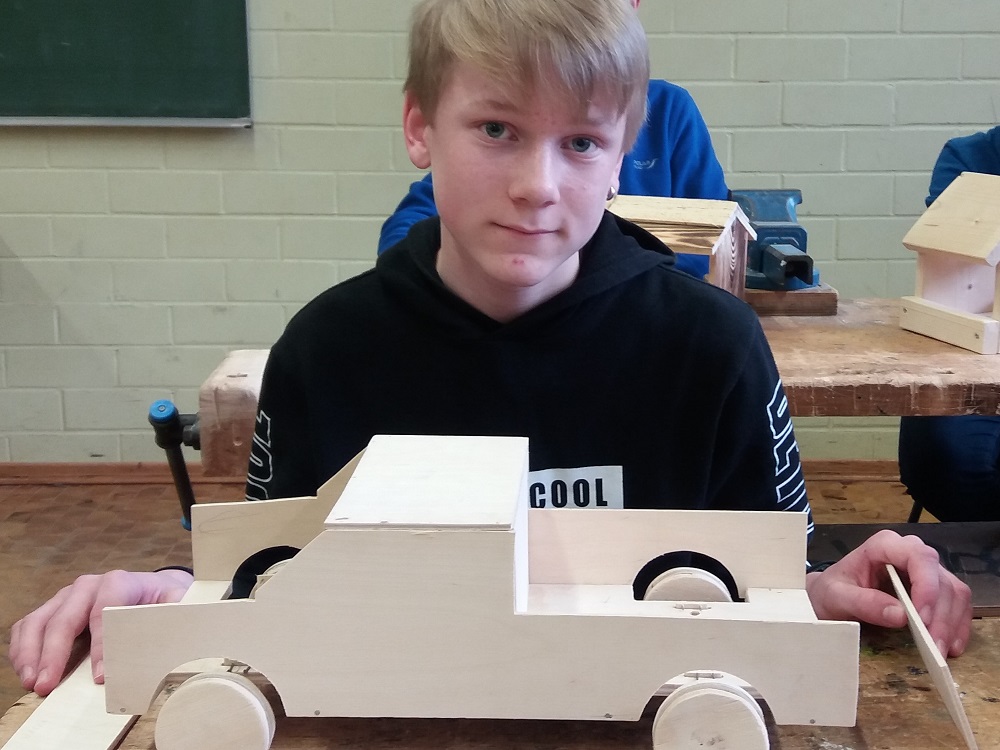 In diesem Wahl-Pflicht-Kurs wird Kreativität mit handwerklichem Geschicklichkeit, Genauigkeit und Ausdauer verbunden. Nach einem halbjährigen Grundkurs in der Jahrgangsstufe 5 bzw. 6, erhalten die Schülerinnen und Schüler des Haupt- und Realschulzweigs der Holderbergschule im Rahmen des Wahlpflichtkurses „Holzwerkstatt“ die Möglichkeit, eigene Wünsche mit dem Werkstoff Holz individuell umzusetzen. So entstehen z.B. Autos, Boote, Setzkästen, Uhren, Vogelhäuschen und vieles mehr.